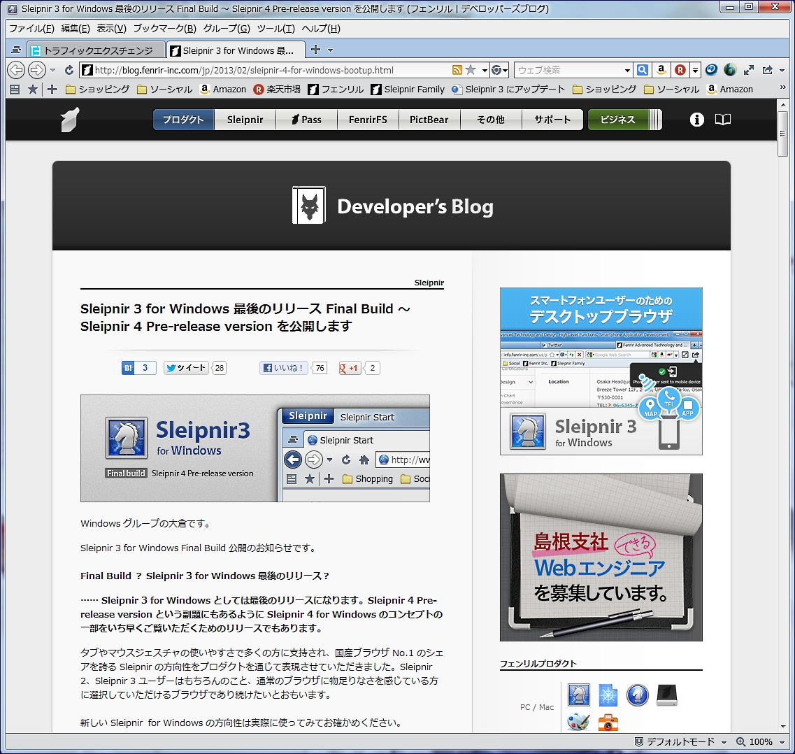 このままSleipnir4に正常進化してもらえれば、使いやすいブラウザになりそうな印象です。