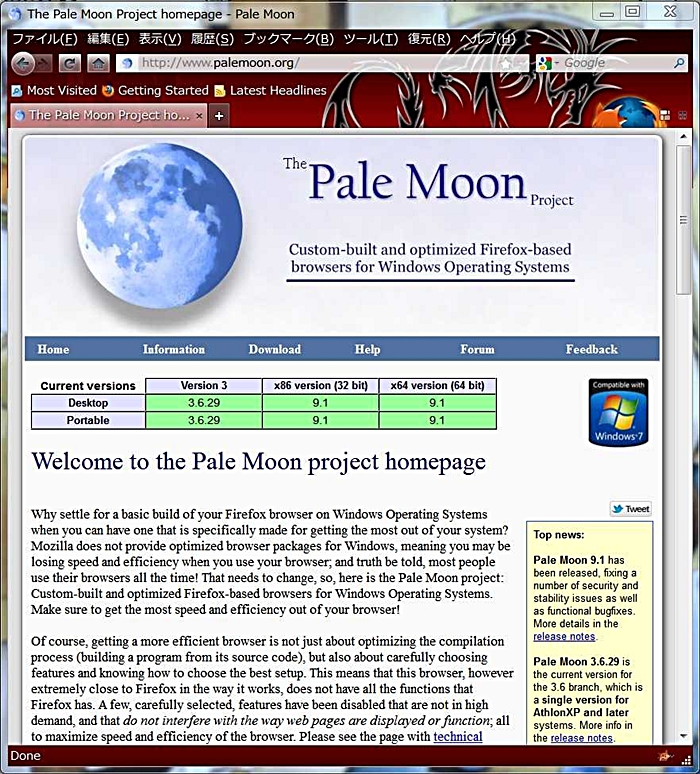 Firefoxは数カ月毎にメジャーバージョンアップしていますが、Pale Moonもそれに合わせてバージョンアップしていますね。