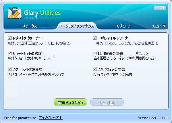 これが、ちょっと鬱陶しくになってきたので、Glary Utilities 2.43に乗り換えました。
