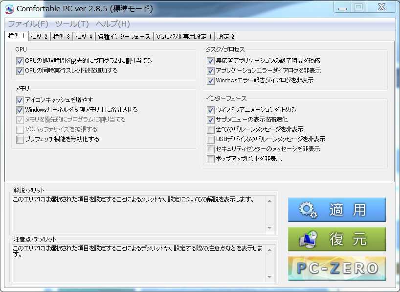 Windows高速化ソフトのComfortable PCが、2.8.5にバージョンアップされました。