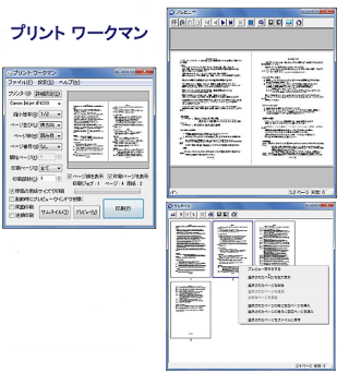 プリント ワークマンは、Word、Excel、PDF、Webページ、JPEG、BMPなど、色々な形式のファイルを縮小し、 同一紙面に印刷できるソフトです。